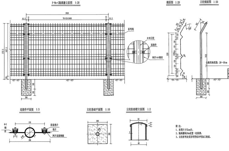 2、F-Ww-C焊接網(wǎng)隔離柵用Φ4mm低碳鋼絲制造,其性能需符合國家現(xiàn)行相關(guān)規(guī)范、規(guī)定;