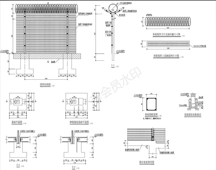 1.拆除并原址新建的圍界具體位置及長(zhǎng)度見總圖,新建鋼筋網(wǎng)圍界高度為2.850米,立柱間距2.500米,下部鋼筋網(wǎng)片利舊。