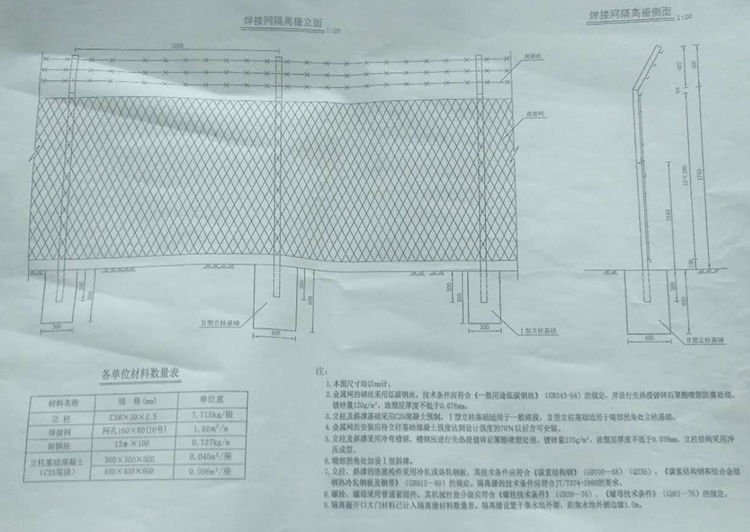 1、本圖鋼板網(wǎng)護(hù)欄尺寸均以mm計(jì)。