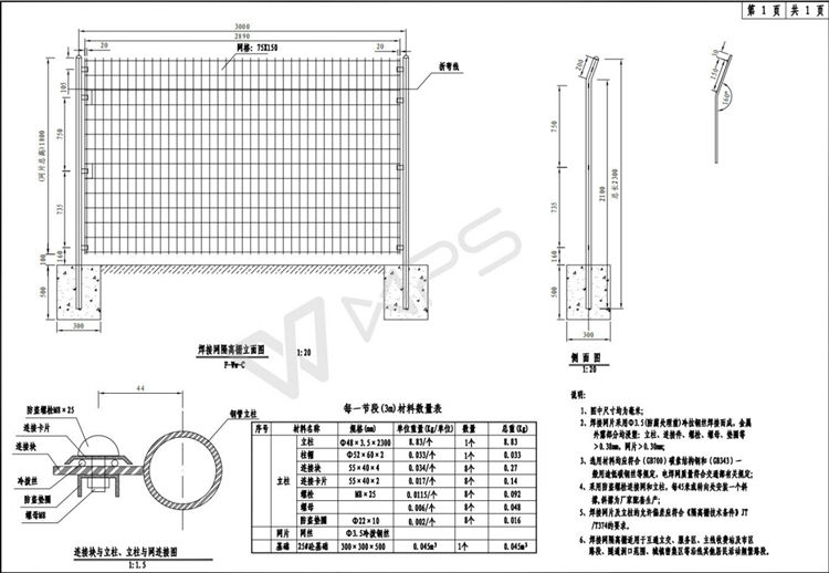 5、焊接網(wǎng)片及立柱的允許偏差應符合《隔離柵技術條件》JT/T374的要求。