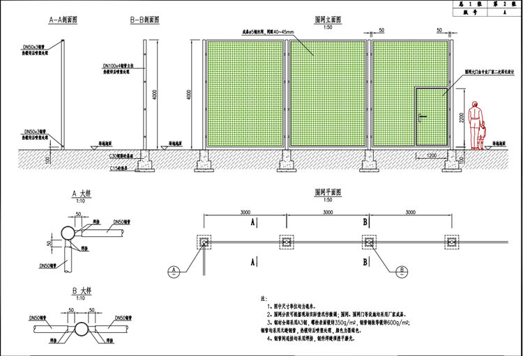 2、圍網分段可根據現場實際情況作微調,圍網、圍網門等設施均采用廠家成品。