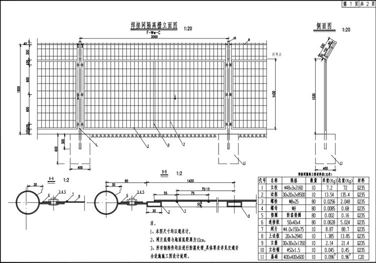1) 隔離柵立柱應(yīng)經(jīng)過交通部門認(rèn)定并取得《交通工程產(chǎn)品批量生產(chǎn)許可證》。