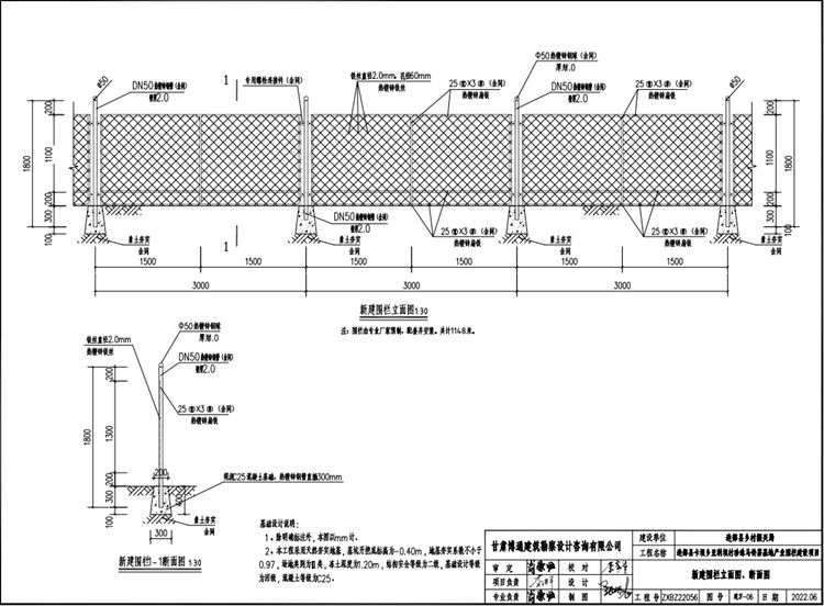 5、新建圍欄整體高度1.8米,包含預(yù)埋地下30公分,圍欄立柱中心間距為3.0米,新建圍欄總長度為1148米。