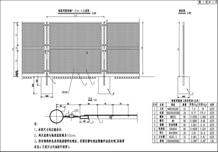 四、高速公路F-Em-C鋼板網(wǎng)隔離柵技術(shù)要求及施工注意事項(xiàng)
