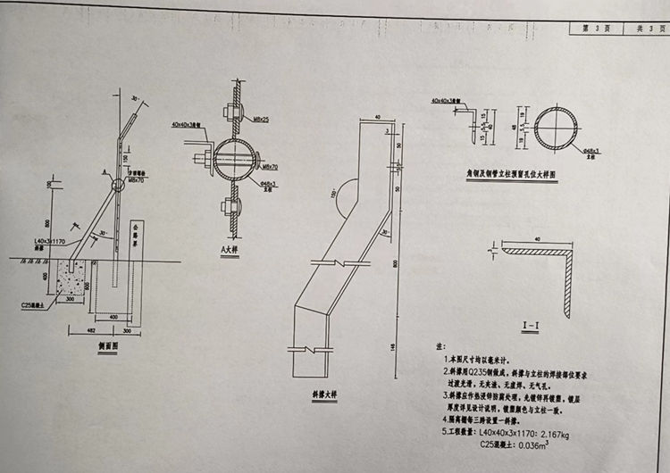 6.斜撐用Q235鋼做成,斜撐與立柱的焊接部位要求過渡光滑,無夾渣、無虛焊、無氣孔。