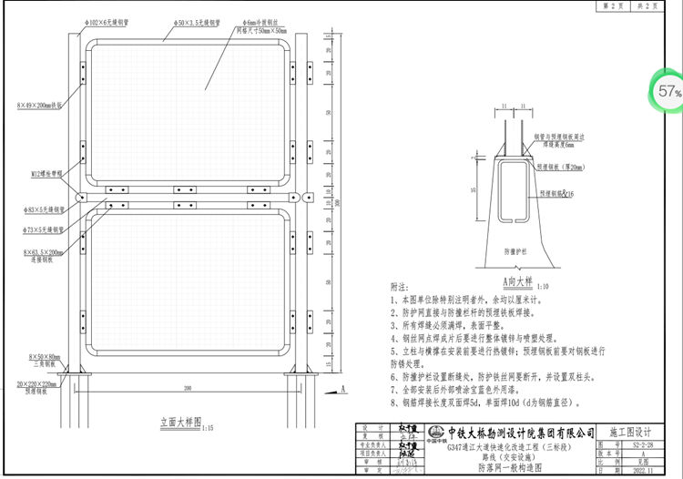 5、熱鍍鋅防落網(wǎng)立柱與橫撐在安裝前要進(jìn)行熱鍍鋅,預(yù)埋鋼板前要對鋼板進(jìn)行防銹處理。