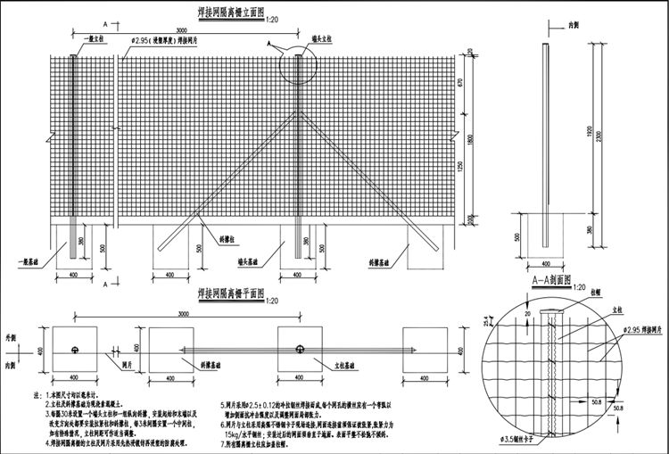 2.焊接網隔離柵立柱及斜撐基礎為現澆素混凝土。