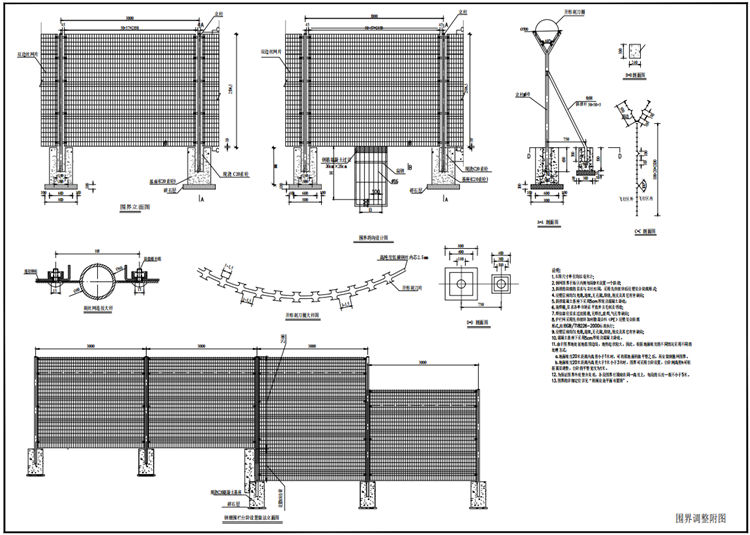 13.鋼筋網(wǎng)圍界的詳細(xì)定位詳見“附屬設(shè)施平面布置圖”。