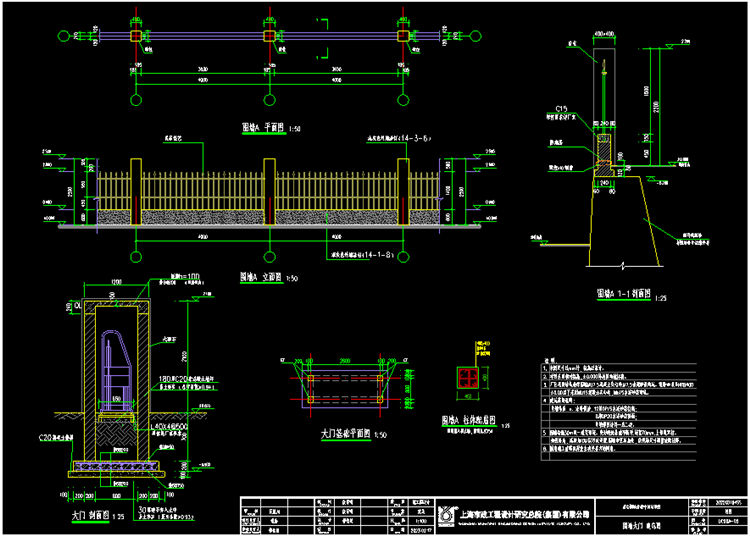1. 本圖鐵藝圍墻尺寸以mm計(jì),標(biāo)高以米計(jì)。