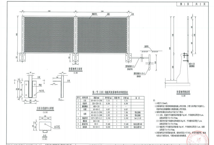 1.本圖熱鍍鋅涂塑防拋網(wǎng)尺寸以mm計(jì)。