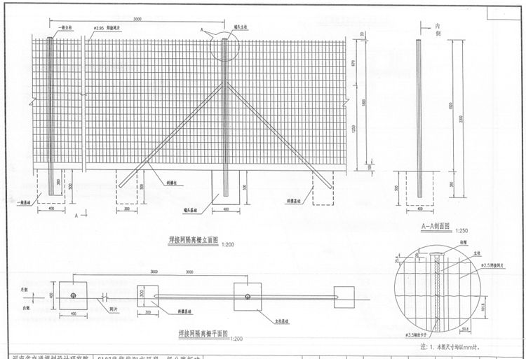1.本圖鋼絲網(wǎng)圍欄尺寸均以mm計。