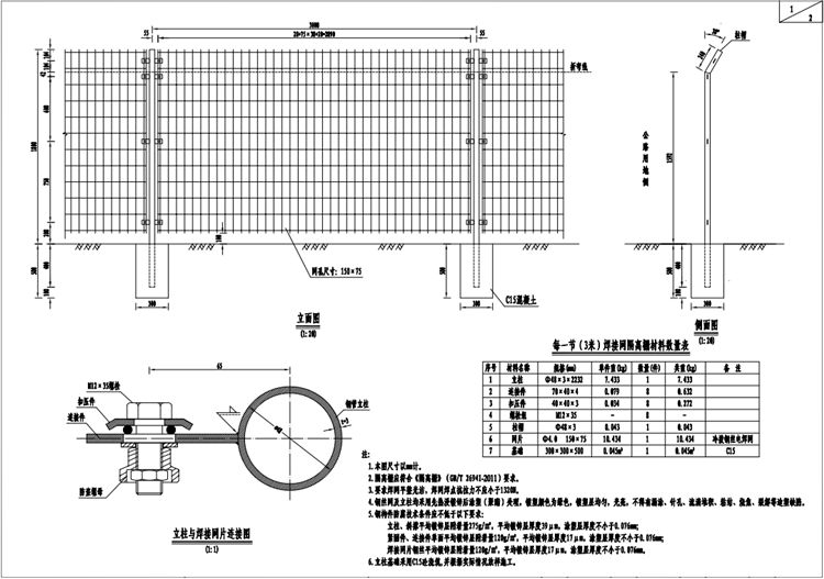 1.本圖熱鍍鋅鐵絲網(wǎng)圍欄尺寸以mm計(jì)。
