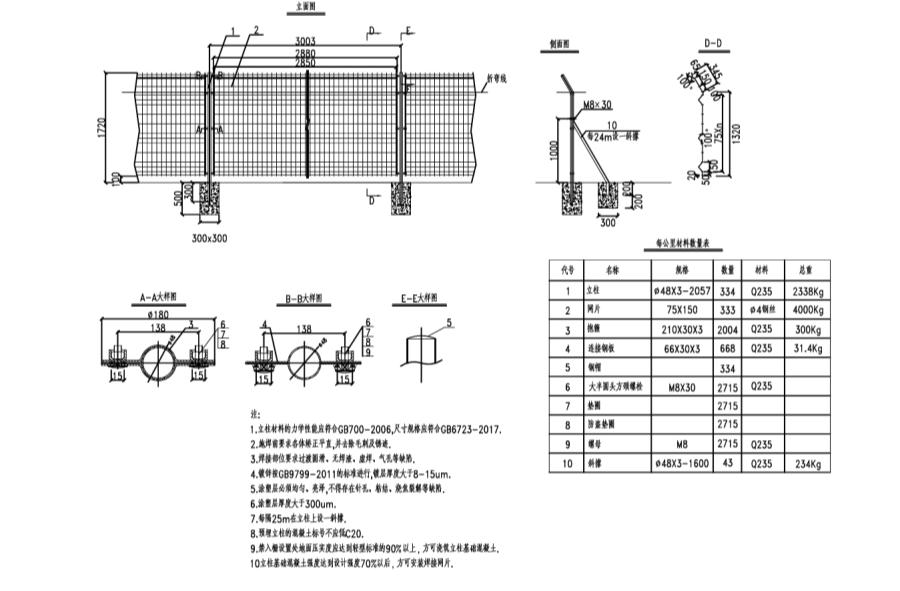 10.立柱基礎(chǔ)混凝土強(qiáng)度達(dá)到設(shè)計(jì)強(qiáng)度70%以后,方可安裝焊接網(wǎng)片。