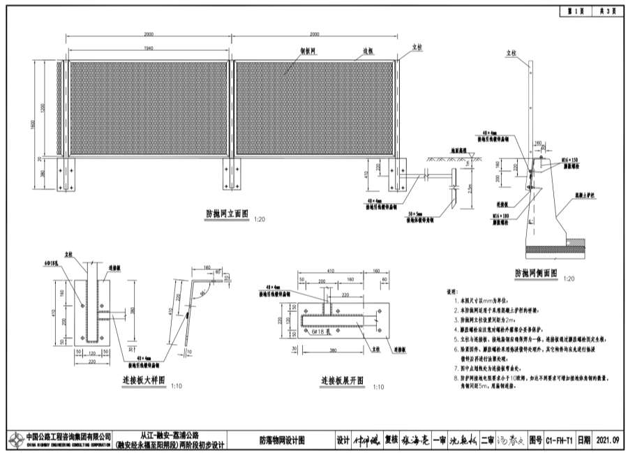 2.本防拋網(wǎng)適用于采用混凝土護欄的橋梁。