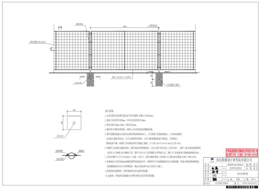 1.光伏區(qū)圍欄的設(shè)置位置見總平面布置圖,本圖尺寸均以mm計(jì)。
