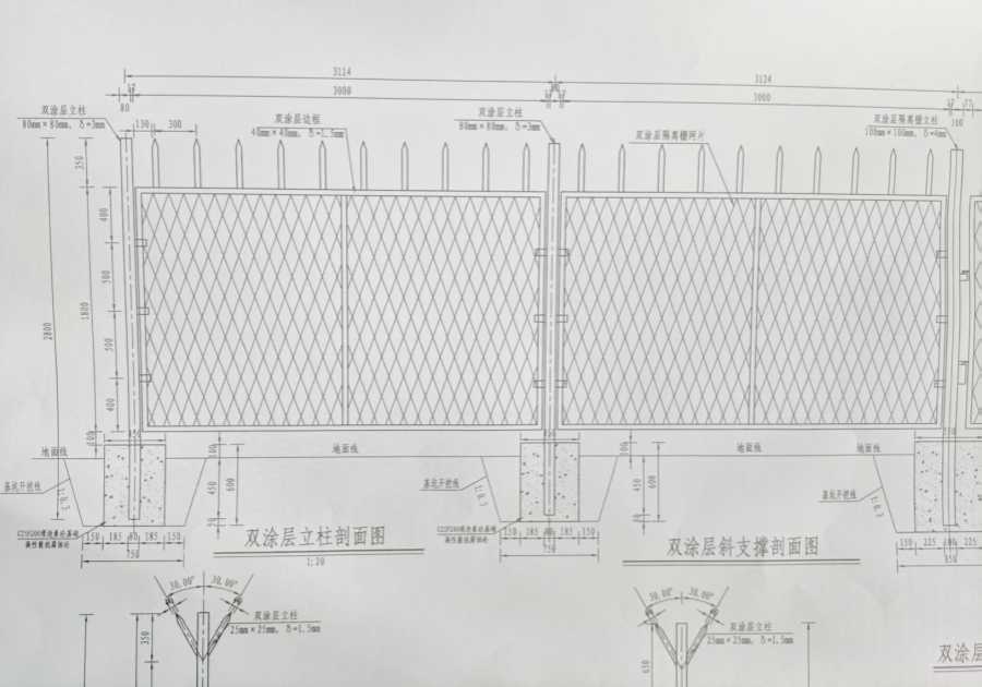 2、據(jù)規(guī)范《隔離柵》GB/T 26941.1-2011,隔離柵(包含大門)防腐采用雙涂層隔離柵Gw-3.0-55,涂層要求:第一層(內(nèi)層)為金屬鍍層,平均鋅層質(zhì)量不小于150g/㎡,第二層(外層)為非金屬涂層,涂層