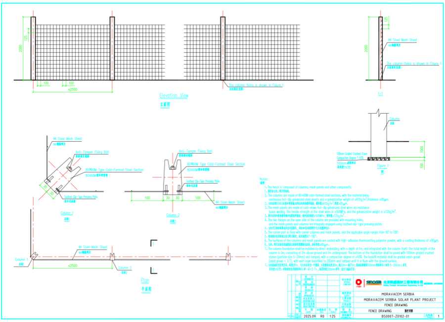 7、立柱基礎(chǔ)采用直埋方式,深度為1m,與立柱本身為一個整體,立柱整體長度為3m,地上2m+地下1m;基礎(chǔ)底部鋪設(shè)100mm級配碎石(粒徑5-20mm)夯實,壓實度≥93%。回填材料采用級配砂石(砂:石=3:7),每層回填200mm夯實,直至與地表平齊。
